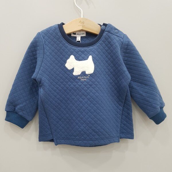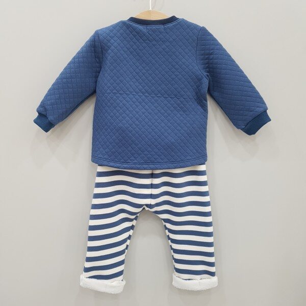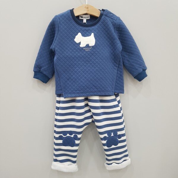 아가타 베이비 상하세트 실내복입니다. 상의는 아가타 시그니처로고봐 누비지 원단으로 되어있는 것이 포인트입니다.하의는 안감이 기모로 되어있어 따뜻합니다.