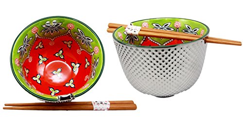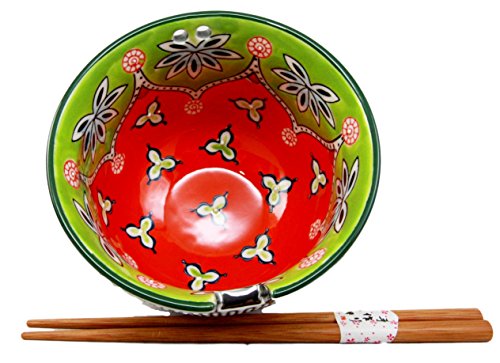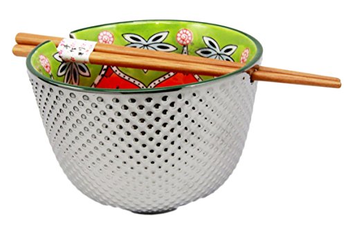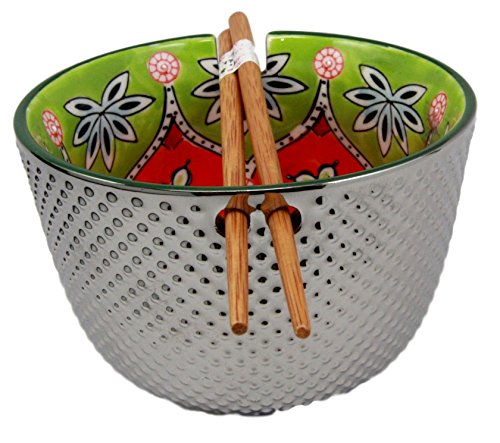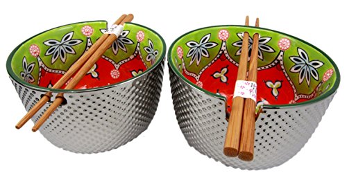 These Silver Plated Ramen Bowls are made of ceramic, designed with beautiful floral patterns in deep rich colors. The bowls come equipped with a pair of wooden chopsticks each with built in holes and rest for them (refer to the photos).