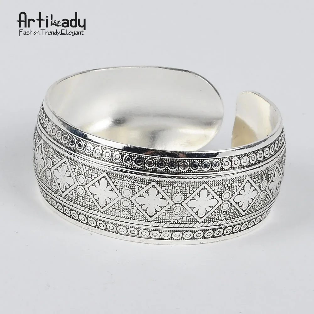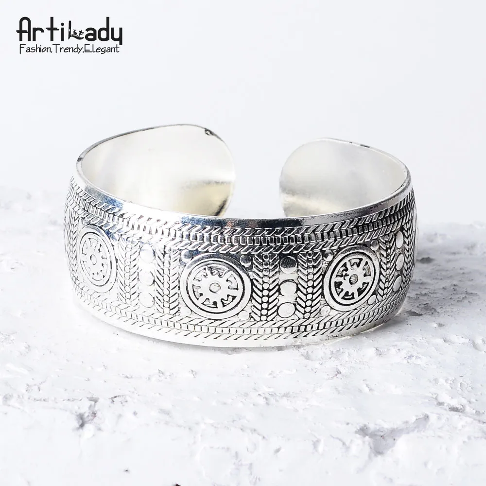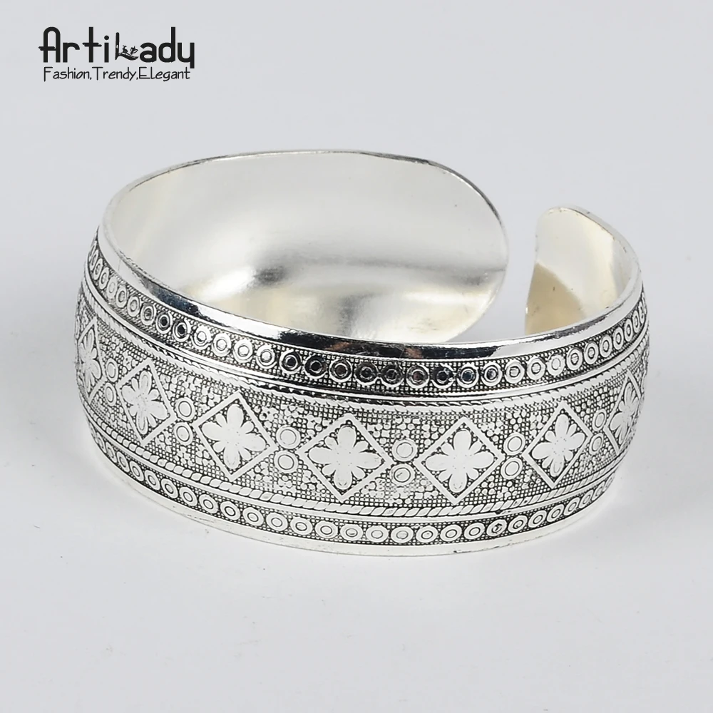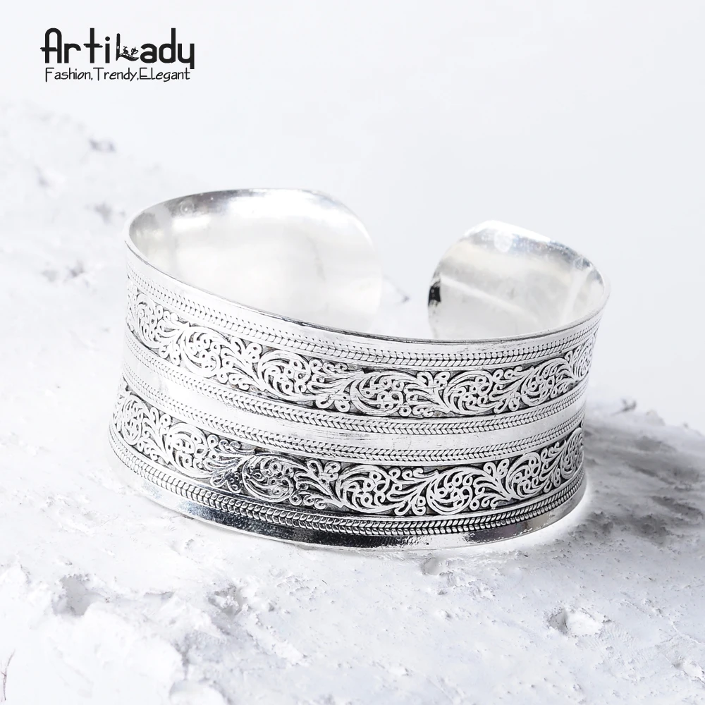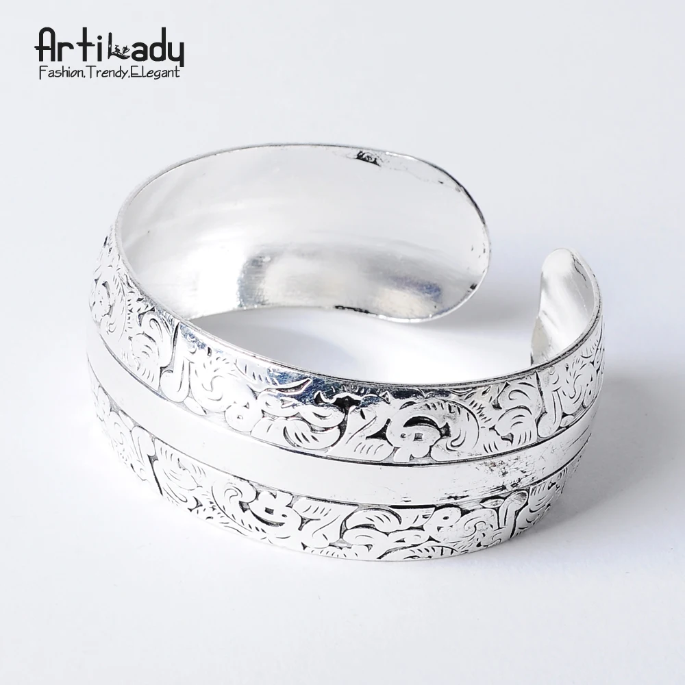 Bohemian Antalya bangles:antique Silver carve pattern Statement