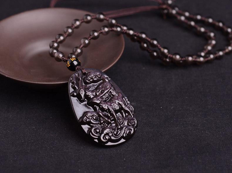开光护身符如意添禄黑曜石吊坠 属猪2017年开运吉祥物男女