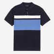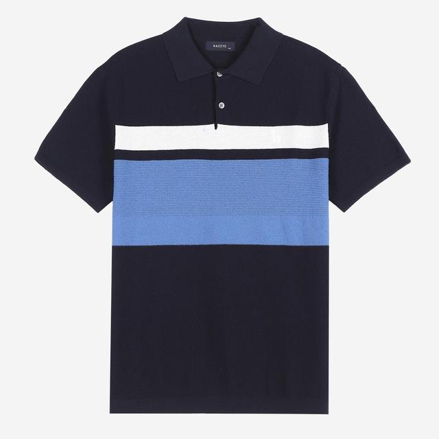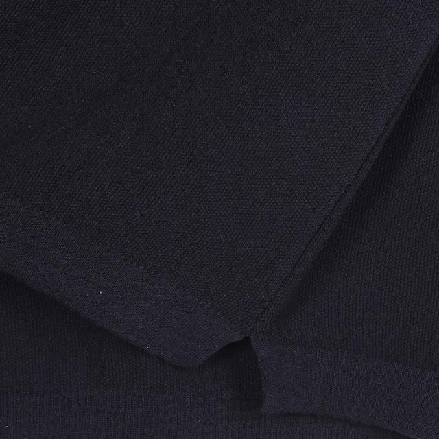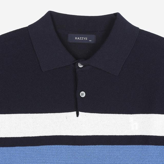 중앙에 투톤의 컬러블록을 배색하여 포인트를 주었으며 카라넥 디자인으로 단정한 외관을 보여주는 니트입니다.
