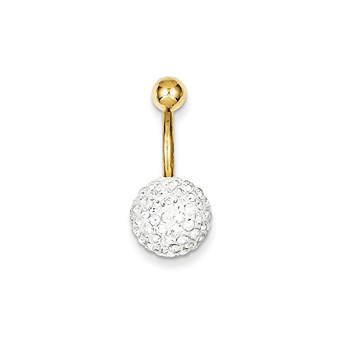 Product DescriptionSolid 10k Yellow Gold with 10mm White Crystal Ball Belly Dangle0