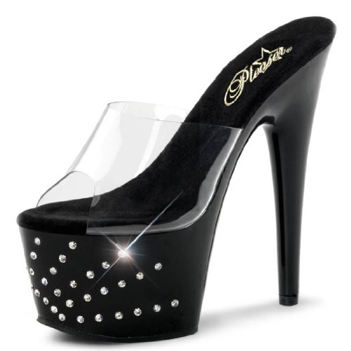 Black and Clear Sparkly High Heels with Rhinestones and 7 Inch Heels