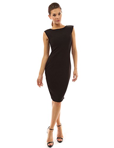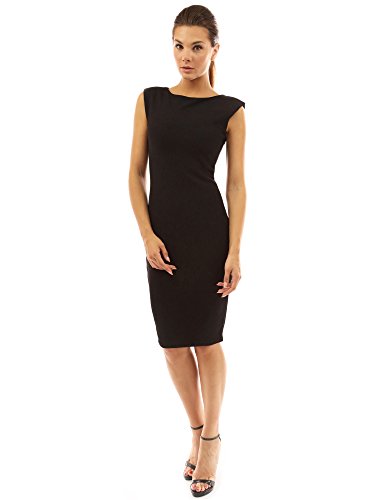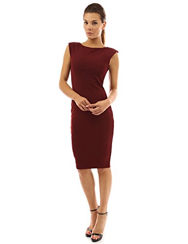 Solid Boat Neck Sleeveless Fully Lined Career Cocktail Sheath Dress. Model in pictures is 5 feet 8 inches (173cm) tall wearing size S.