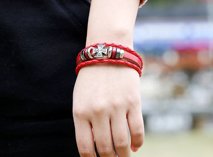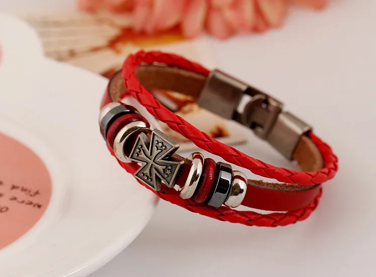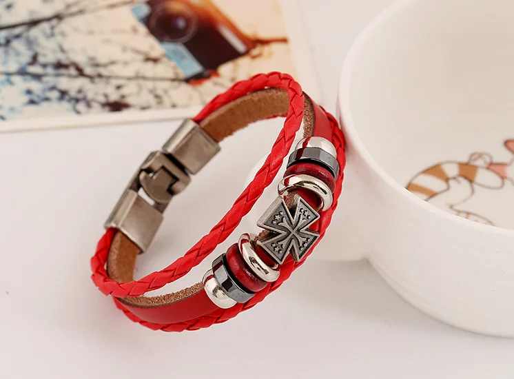 Ceramic Bracelet:Womens Leather Cross Bracelet