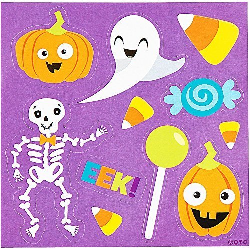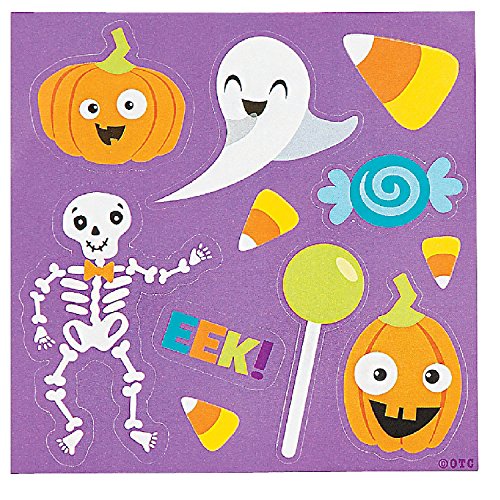 Studio : OTC Publisher : OTC Binding : Toy Product Description Each 4" x 4" sheet includes 11 assorted stickers. (50 sheets/unit) Stickers run from 3/8" to 2 1/4". These make great trick or treating alternative, class party gifts or Halloween party favors. 0