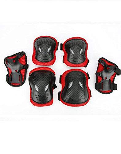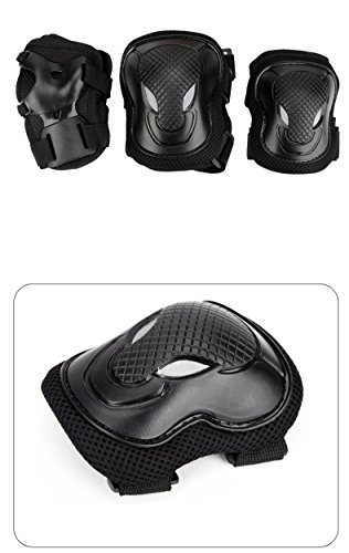 -. Feature : High quality protective pad, designed for safety and comfort. / Multiple adjustable elastic straps and Velcro closures for secure fit for various knee girths / 6pcs set , Wrist guards, knee pads, elbow pads. / High hardness PVC shell, thickened breathable fabric, comfortable and durable. / Suitable for skateboard, roller blading, riding a scooter, bicycle and many other outdoor sports.