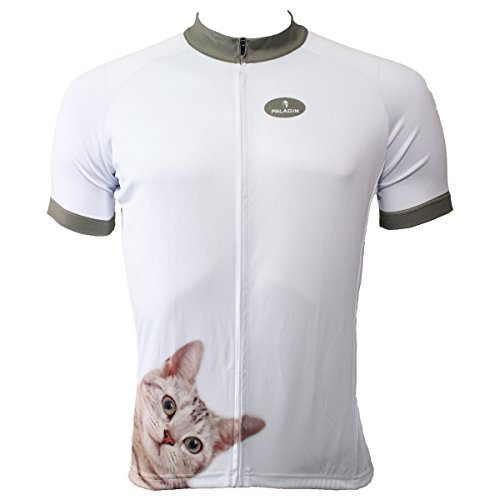 Paladin Custom Cycling Jersey for Men Short Sleeve Cat Pattern White Bike Shirt Size XL