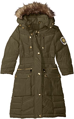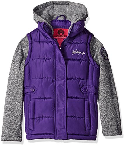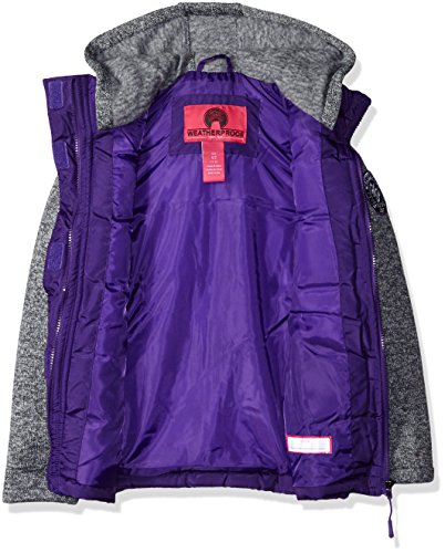 Weatherproof Big Girls' Bubble Jacket with Sweater Fleece Sleeves, Purple Bubble/Grey Sleeves a, 10/12