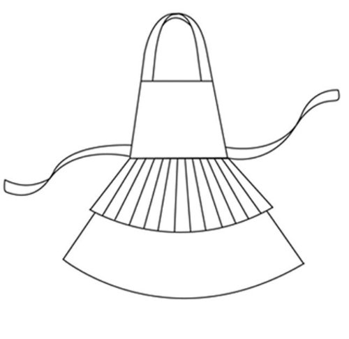 • Halter style with pleated skirt front; Velcro closure at neck and tie waist for easy adjustments