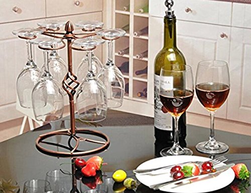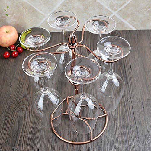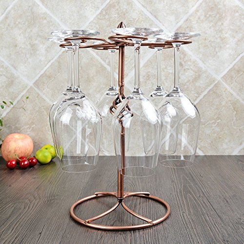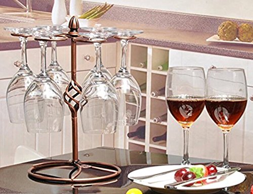 LOHOME Wine Glass Rack, 6 Stemware Wine Glass Air Drying Rack System Cups Holder Display Stand Upside Down Hanging Cup Holder Hold - Bronze (Glasses Not Included) (Bronze.)