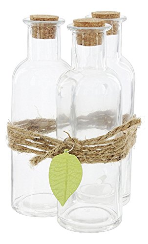 Bundle of 3 Diamond Star Twine-Wrapped Clear Glass Bottles with Corks