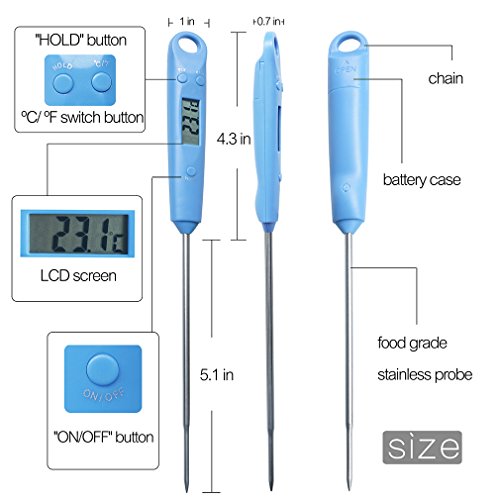 - WIDE RANGE AND SAFE — Test range from -58ºF to 572ºF (-50℃ to 300℃) ,5.1'' long food grade stainless probe avoid your hands from burning.