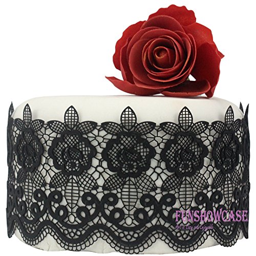 Funshowcase Large Pre-Made Ready to Use Edible Cake Lace Floral Medallion Scallop Black 14-inch 10-piece Set