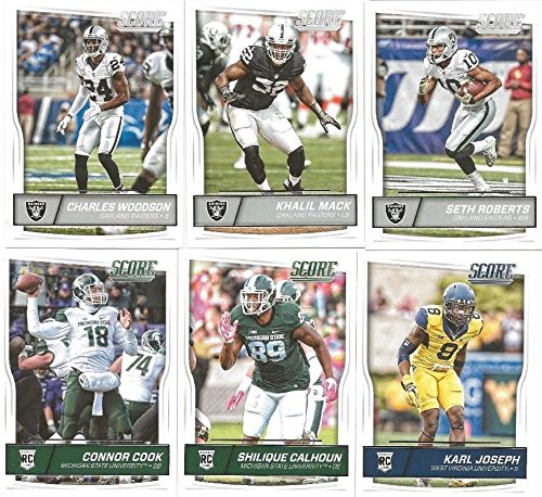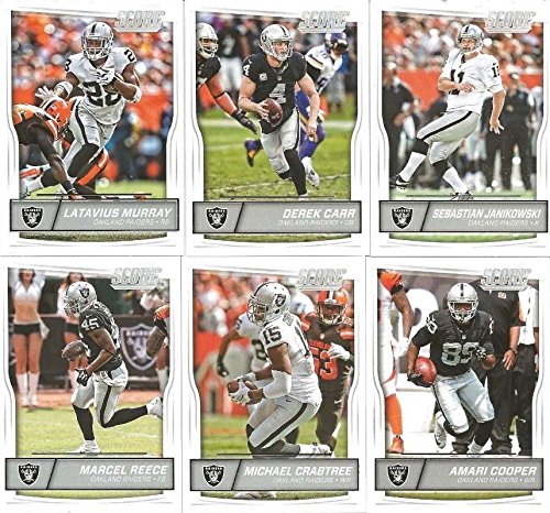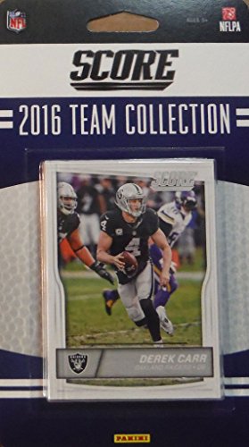 - Oakland Raiders 2016 Score NFL Football factory sealed 13 card team set including Derek Carr, Latavius Murray, Amari Cooper, Michael Crabtree, Marcel Reece, Seth Roberts, Khalil Mack, Charles Woodson, Malcolm Smith, Sebastian Janikowski plus Rookie cards of Connor Cook, Karl Joseph and Shilique Calhoun.