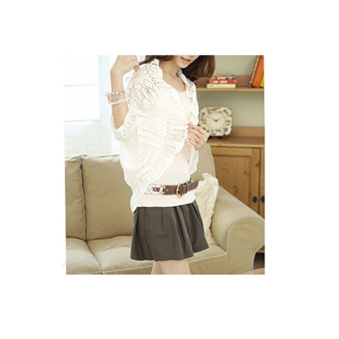 Coney Coney (《고니코니》) ConeyConey 레이디스 봄과 여름 박수 쇼트장 레이스 컬러 가디건 귀여운 볼레로 냉방 대책 등에 (화이트)