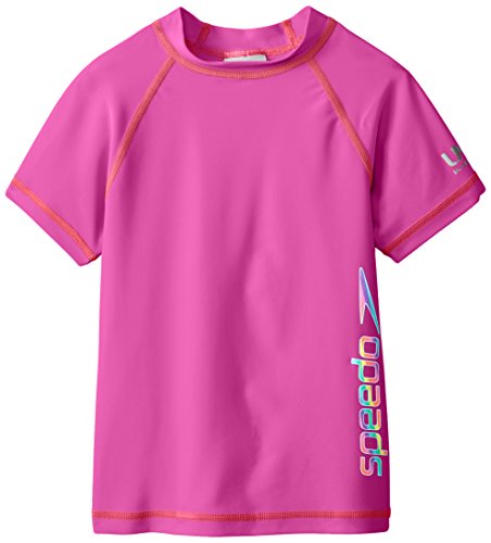 Speedo Big Girls' UV 50+ Short Sleeve Rashguard, New Blush, Large