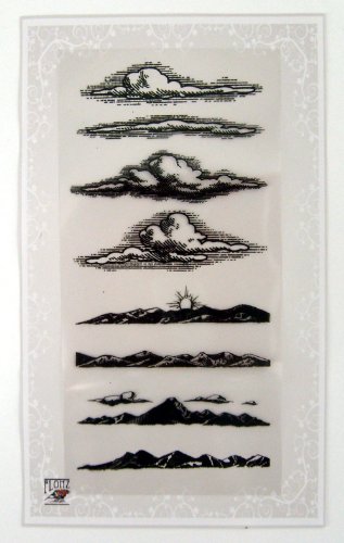-. Title : Cloud and Mountains Engraving Borders Clear Stamps Set