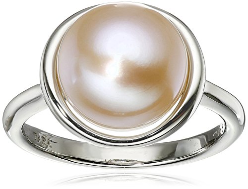 Sterling silver ring featuring bezel-set cultured freshwater pearl center