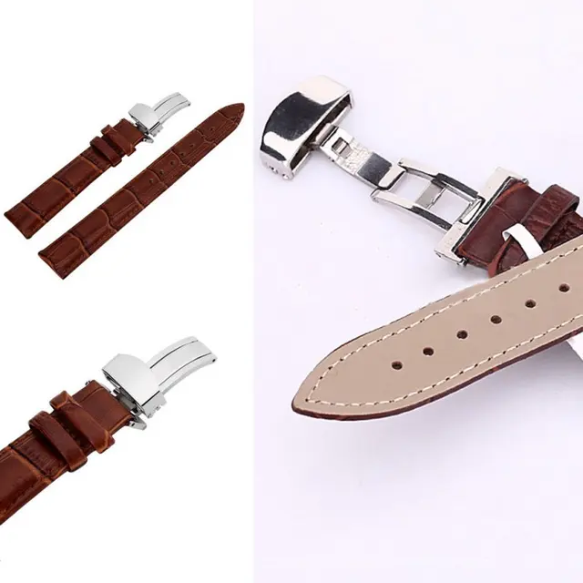 | [해외]18-24 미리메터 시계 밴드 스트랩 butterfly 패턴 디플로 버클 버클 + 가죽 |