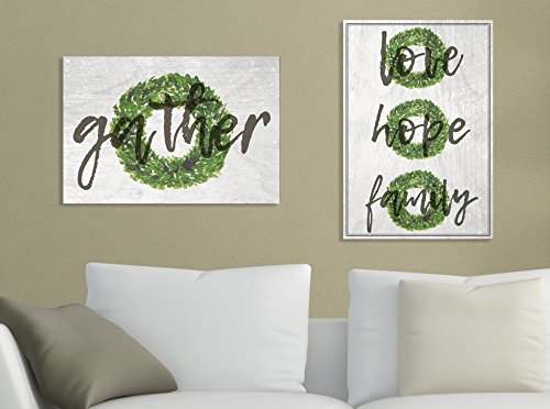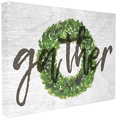 The Stupell Home Décor Collection Gather Boxwood Wreath Typography Oversized Stretched Canvas Wall Art, 24 x 30