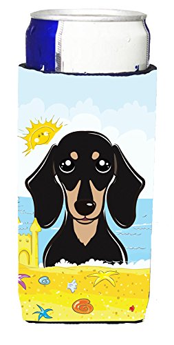 Caroline's Treasures BB2083MUK "Smooth Black and Tan Dachshund Summer Beach Michelob Ultra Koozies for Slim Cans, Multicolor