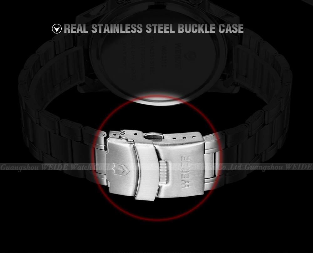 | Stainless Steel Buckle Case Bagian tali jam tangan Weide terbuat dari bahan material stainless yang kokoh dan tidak mudah putus、 tahan untuk penggunaan dalam jangka waktu yang lama.