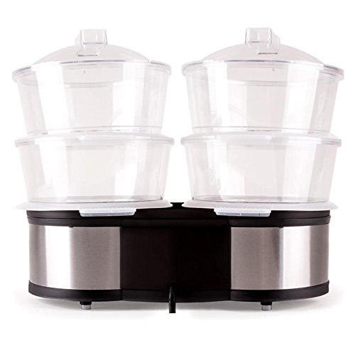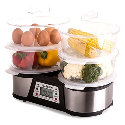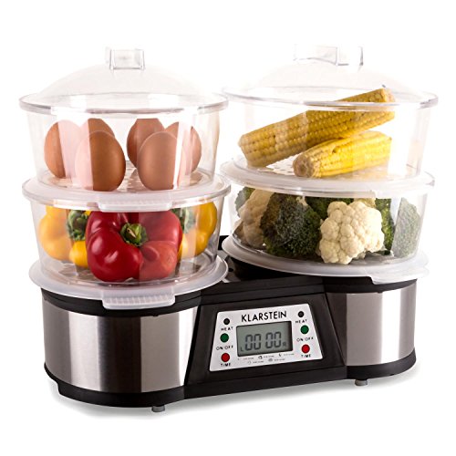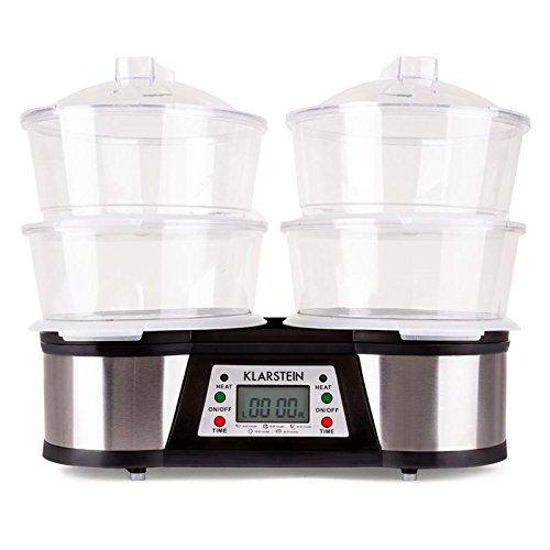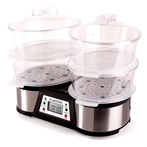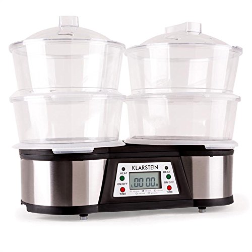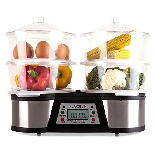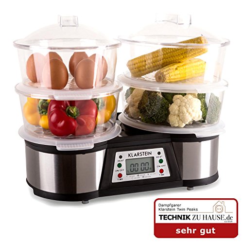 -. Title : Klarstein Twin Peaks elektrischer Doppel-Dampfgarer Edelstahl Gemüsedünster mit 2 Garbereiche (1500W, 3L Tank, separat einstellbare Timer, Bedienpanel) silber-schwarz