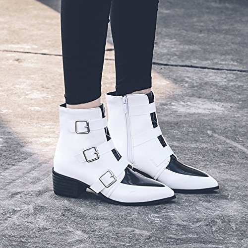 (Mofri)/Women's/Boots/DIRECT FROM USA/Mofri Women's Dressy Color Block Buckle Belt Side Zipper Ankle Booties Pointed Toe Block Medium...
