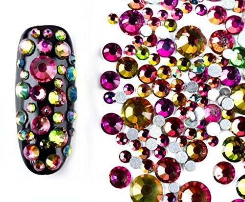 1440 Pieces Multi AB Color Flat Back Rhinestones Round Crystal Gems 2 mm - 5 mm, 5 Sizes[By Zealer]