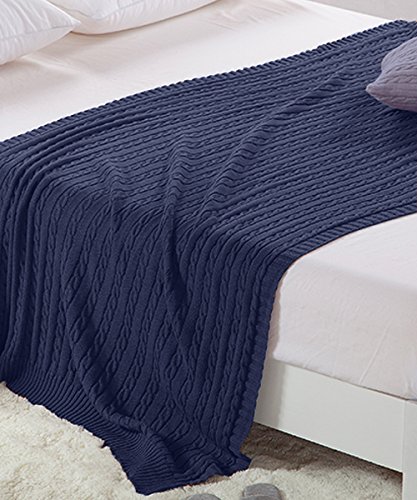 NTBAY 100% Cotton Cable Knit Throw Blanket Super Soft Warm Multi Color(51"x 67", Navy)