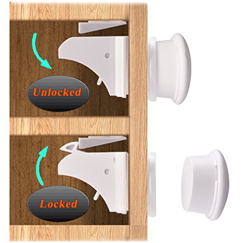 Child Safety Magnetic Cabinet Locks(4 Locks + 1 Key), Baby Proof, No Tools Or Screws Needed - Zeeally