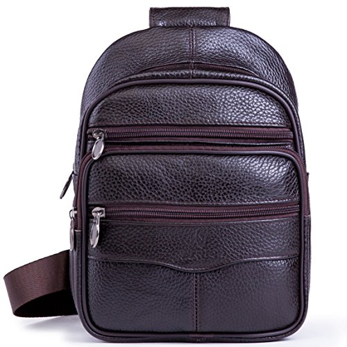 -. Title : Genuine Leather Shoulder Sling Backpack Bag Unisex Outdoor Crossbody Sling Pack Sport Daypack