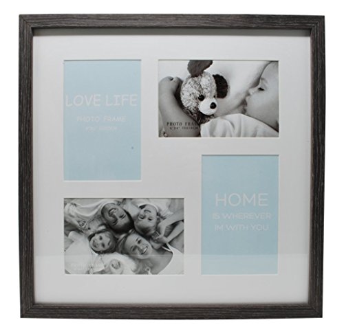 Momentum Home Modern Wood Look Picture Frame for four 4Óx6Ó photos, two photos horizontal and two photos vertical, making a perfect collage! Outer dimensions are 14Ó x 14Ó. Two stylish colors! Gray and natural.