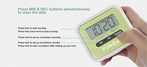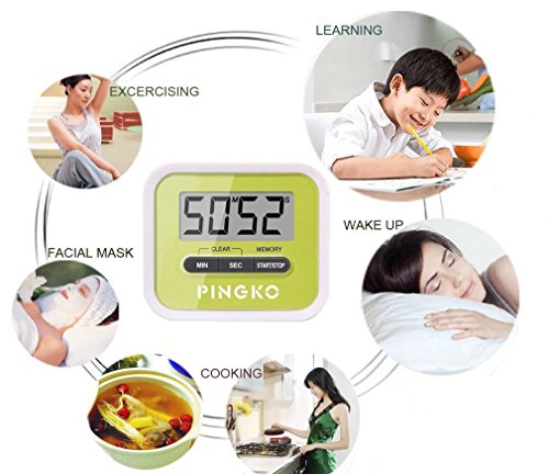 -. Title : PINGKO Portable Digital Kitchen Timer, Countup & Countdown Timer with Clock,maximum to 99 Minutes 59 Seconds - Green