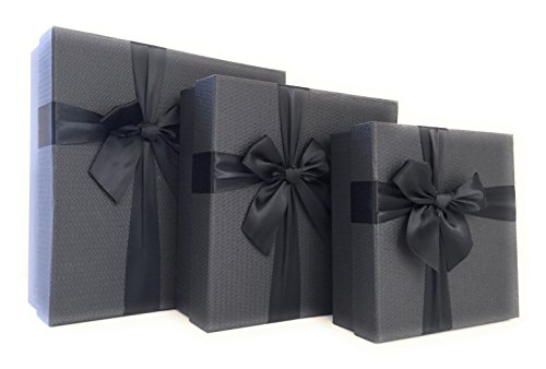 Cypress Lane Gift Boxes with Ribbon, a Nested Set of 3 (Black)