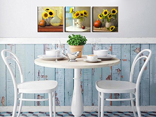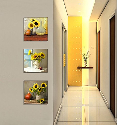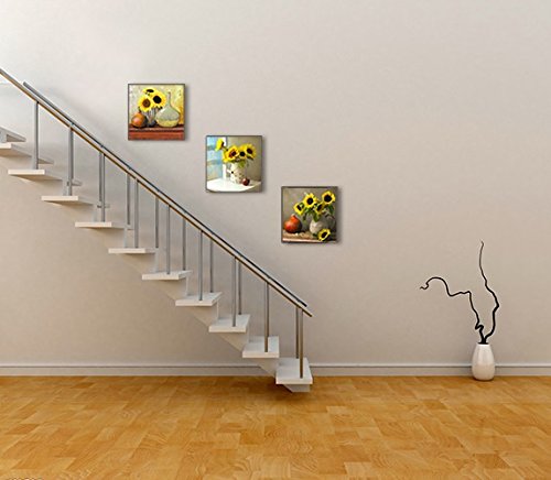 1: Beautiful sunflowers canvas wall art printed and framed by SZ HD Painting. The artist-grade canvas has strong sense of texture and full of artistic touch, reflects your noble temperament and taste. This canvas picture dimensions: 12"x12" x 3 piece = 30x30cm x 3 panels.