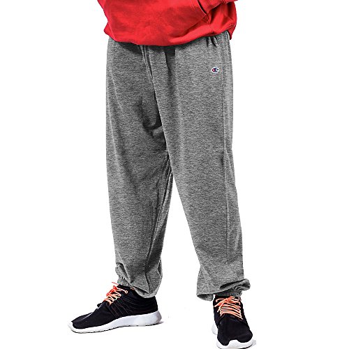 Product Description Get moving in Fleece Pants designed to fit sizes up to 6XL from the Champion Big and Tall collection. Full athletic fit allows flexible range of motion. Breathable 8.1 oz. cotton blend fleece is brushed inside for softness. Stay put, covered elastic bottom leg. Two onseam pockets bartacked for durability. Comfortable double-stitch elasticized waist never binds and adjusts with an inside drawcord for a flexible fit. Champion C logo at left hip. 0