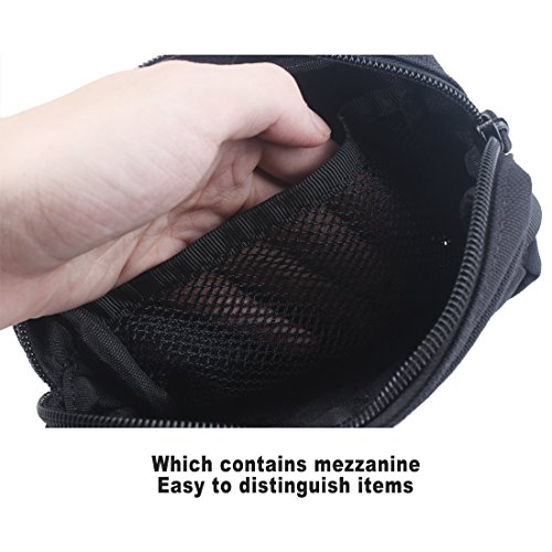 -. Feature : Fit for outdoor sports, camping, adventure, emergency, protection and running. / Product Dimensions: approx 7" x 5" x 1.5" (18 x 13 x 4cm ), Extremely hard wearing and Strong. / You can wear MOLLE gear , wear them on your belt too. / It would be best for small tools, a compass, small folded maps, or electronic devices and the required backup batteries.And there have internal divider panels. / Metal buckle and zipper are very durable.