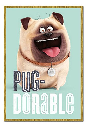 -. Title : The Secret Life Of Pets Mel Pug-Dorable Poster Magnetic Notice Board Oak Framed - 96.5 x 66 cms (Approx 38 x 26 inches)