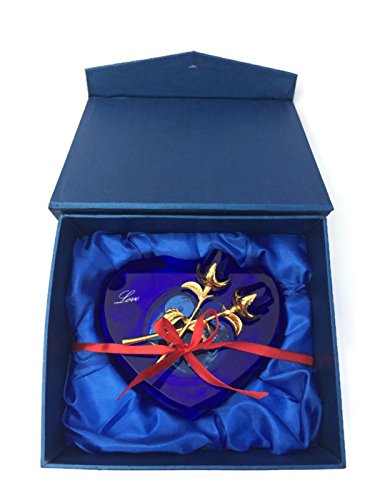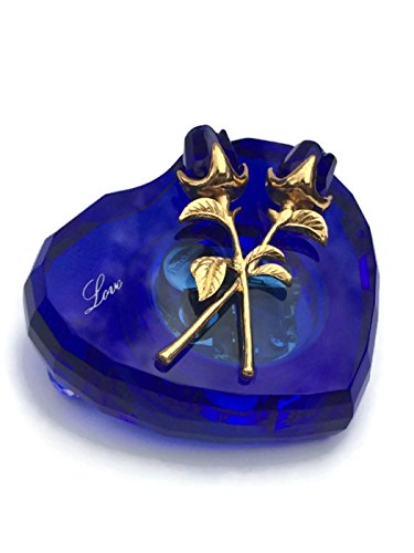 Feature : BEST GIFT FOR WOMEN, GIFT FOR GIRLFRIEND, GIFT FOR WIFE. THE PERFECT GIFT FOR BIRTHDAY, GIFT FOR ANNIVERSARY. VALENTINE, MOTHER'S DAY, CHRISTMAS / With 5 layers of cuts, this crystal emulates a beautiful blue sapphire. Made with the best quality solid blue k9 crystal , it's hand made into the shape of a heart with two dark blue crystal roses on top. / Engraved with the word Love at the left corner of the crystal. / High quality Japanese Sankyo music movement. 18-note windup music box mechanisms play up to 3 minutes. / It comes with a blue gift box with silver inscriptions on the box. (Like a river flows surely to the sea/ Darling so it goes/ Some things are meant to be/ Take my hand, take my whole life too/ For I can't help falling in Love with you). This is a true piece of artwork that stands out for its beauty, and a wonderful present for the ones that you love. This is not a typical music box but an entire piece of solid crystal.