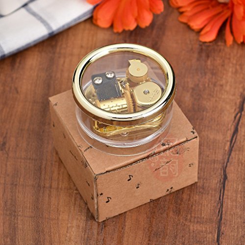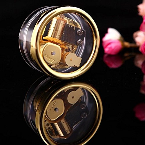 Title : 18 Note Music Box Acrylic Clear Cylindrical Gold Windup Clockwork Musical Movement Home Decor Gift