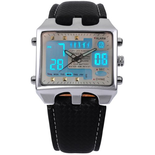 -. Title : AMPM24 Oshen Silver LCD Analog Mens Digital Sport Quartz Watch OHS034
