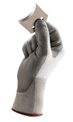 -. Title : Ansell Size 9 HyFlex® 13 Gauge Light Duty Cut Resistant Gray Polyurethane Palm Coated Work Gloves With White High Performance Polyethylene Liner And Knit Wrist