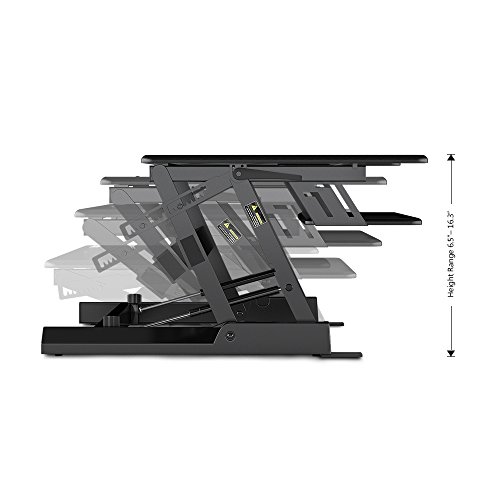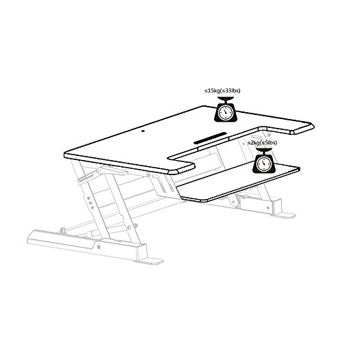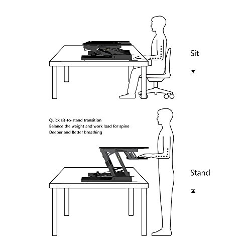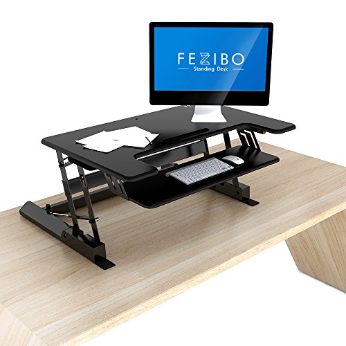 -. Feature : 1.QUICK SIT-TO-STAND TRANSITION: This adjustable workstation enables you to strike a healthy balance between sitting and standing throughout the day, allowing smooth, stable transitions between positions in a matter of seconds. / 2.EASY OPERATION: A gas-sP.R.Ing hovering system allows you to adjust the workstation with a light squeeze of the handles, easily lifting up to 33 lbs. / 3.SPACIOUS WORK AREA: The 36" x 22" work surface provides ample space for single-monitor, dual-monitor and laptop + monitor setups while still allowing for ergonomic comfort and enhanced productivity. / 4.DUAL-TIER DESIGN: This special design helps keep your shoulders and neck relaxed while working without requiring additional posture adjustment. / 5.HIGH-QUALITY CONSTRUCTION: The FEZIBO desk has undergone extensive testing for balance, stability and movement, including a fatigue test over 6,000 height adjustments. Return within 30 days of receipt. 5-year warranty for main parts.