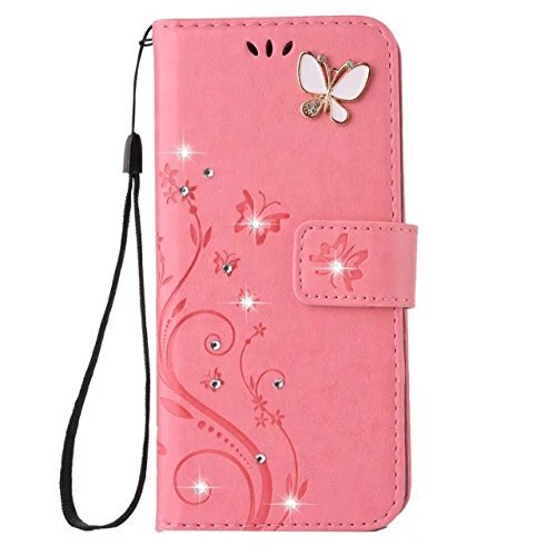 Auroralove Note 8 Luxury Handmade Bling Rhinestone Soft Slim Flip Stand Wallet Case for Samsung Note 8 Flower Butterfly PU Leather Case for Girls Women (Samsung galaxy Note 8, Pink)