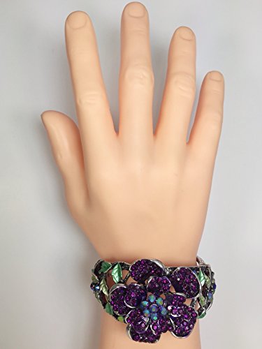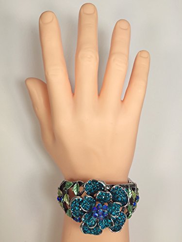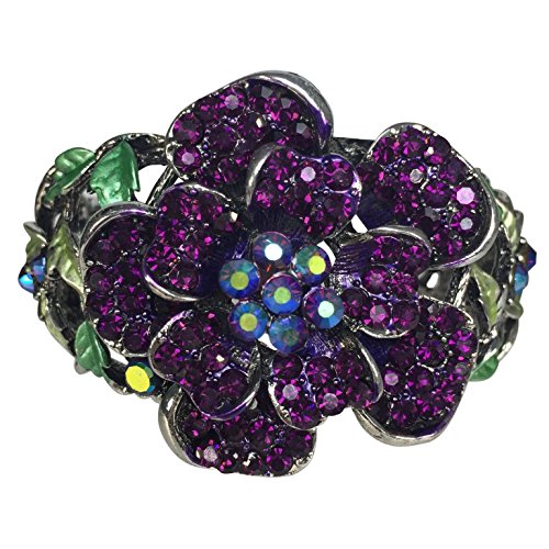 -. Title : Rhinestone Rose Stunning Statement Flower Hinged Bangle Bracelet - Assorted Colors