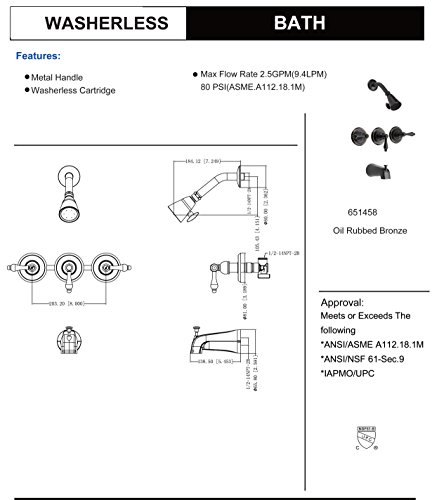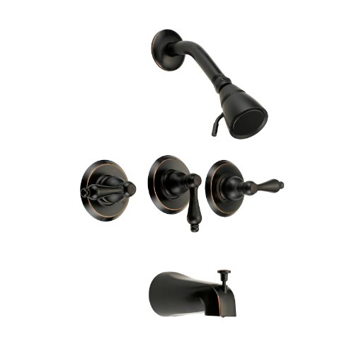 Designers Impressions 651458 Oil Rubbed Bronze Tub Shower Combo Faucet - Three Handle Design and Brass Shower Head - Convertible