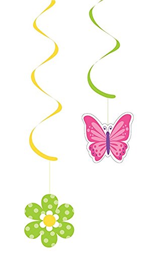 Creative Converting 33460 Paper Flowers and Butterflies Dizzy Danglers Hanging Party Decoration, Green/Yellow/Pink (15 Count)