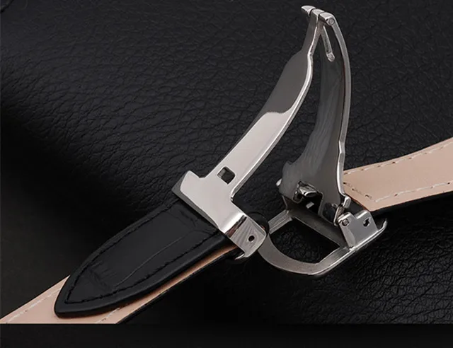 | [해외]새로운 20 미리메터 수제 정품 가죽 블랙 시계 스트랩 밴드 + 나비 걸쇠 + 도구 21 Chronoscaph & Autoscaph |